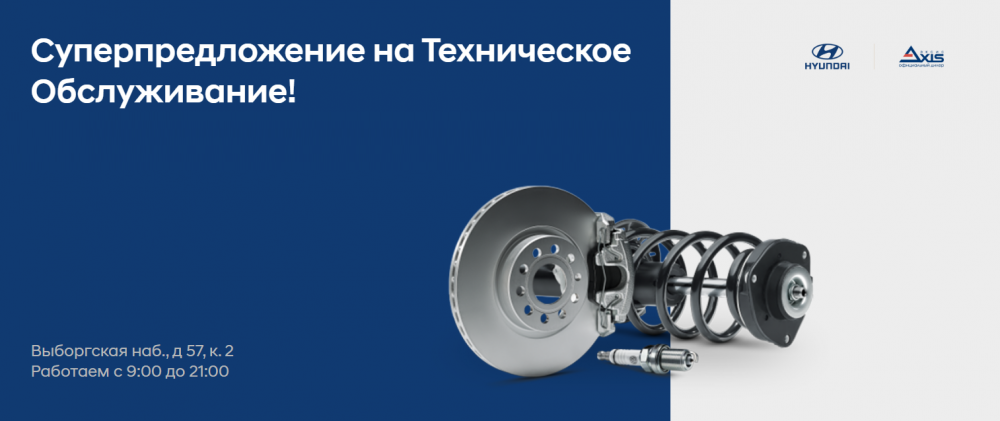 Скидка 25% на работы и запчасти для ТО от официального дилера Hyundai.